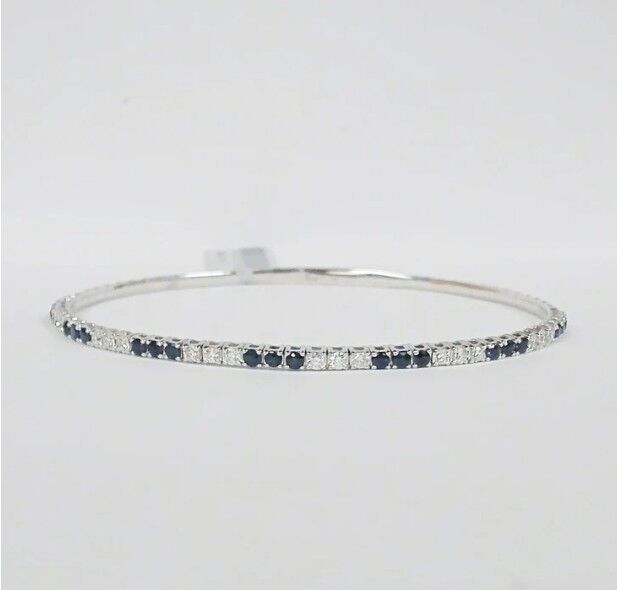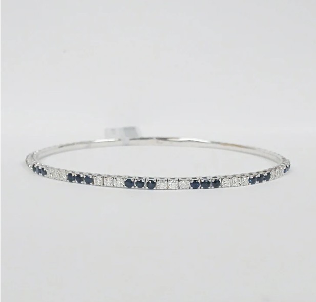 Lady’s White 14 Karat Flex Bangle Bracelet 19 = 1.23tw Round Blue Strong Sapphires