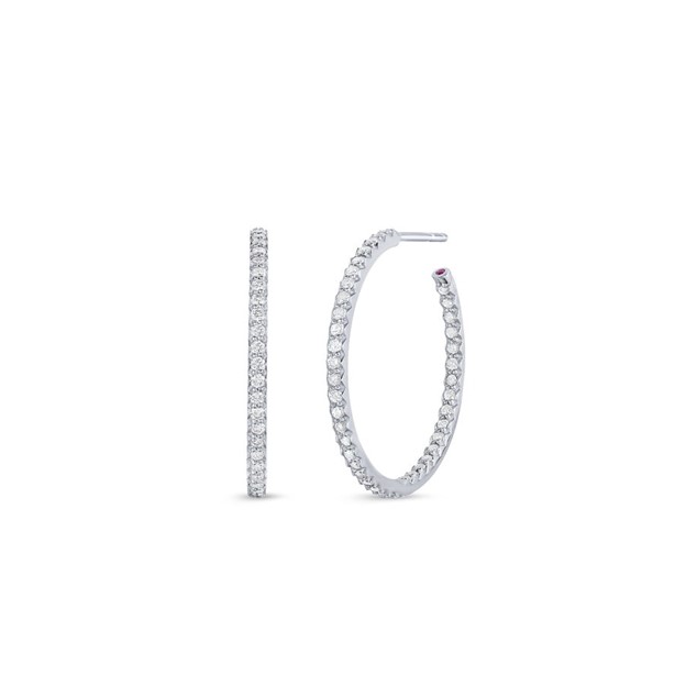Lady’s White 14 Karat Insd Out Hoop Dia Earrings With 42=2.00Tw Round G/H Si2 Diamonds