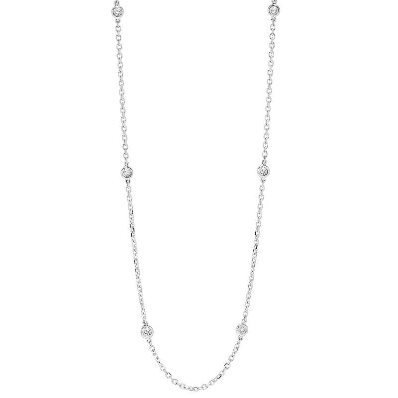 Lady’s White 14 Karat Necklace Length 20 inches With 6 staged 1.42ctw Round Diamonds