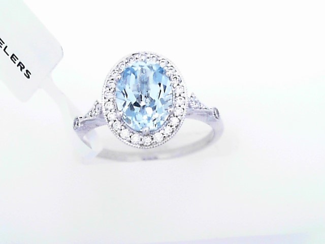 Lady’s White 14 Karat Oval AQUA With Diamond Halo Fashion Ring Size 6.5 one = 1.30ct Oval Bluish Green Moderately Strong AQUA