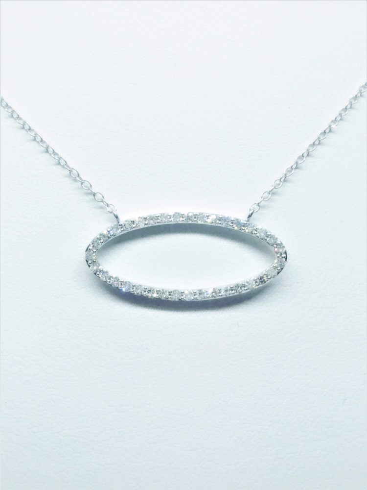 Lady’s White 14 Karat Sideways Oval Necklace With 35=0.33Tw Rose Cut G/H Si1 Diamonds
