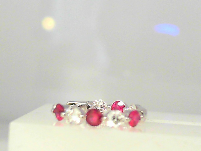 Lady’s White 14 Karat Small in and out Hoop Earrings 6= Round Rubys Round Diamonds