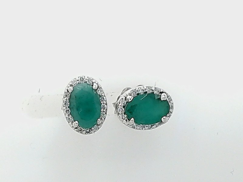Lady’s White 14 Karat Stud Earrings With 2 = Oval Emeralds