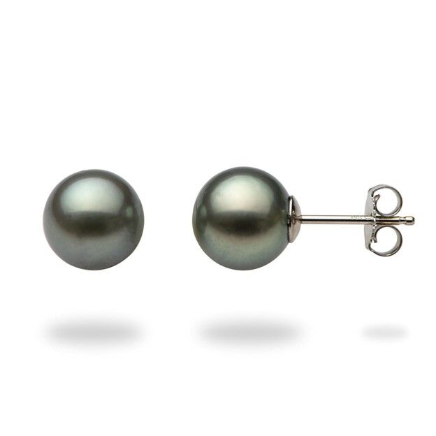 Lady’s White 14 Karat Stud Earrings With 2=9.00X9.00Mm Round Black Pearls