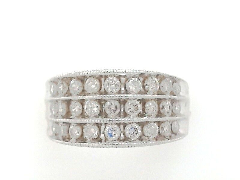 Lady’s White 14K Multi Row Dia Fashion Ring Size 5 With 27 = 0.81Tw Round H/I I1 Diamonds