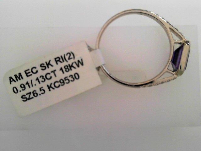 Lady’s White 18 Karat Bezel Set East West Catherdral Fashion Ring Size 6.5 one = 0.91ct Emerald Purple Strong Amethyst