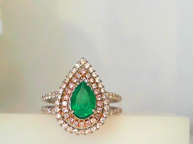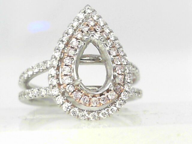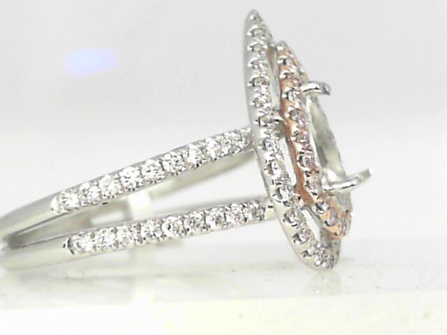 Lady’s White 18 Karat Double Halo Split Shank Fashion Ring 0.15tw Round SI3 Natural Pink Diamonds 0.48tw Round G/H SI2 Natrual Diamonds