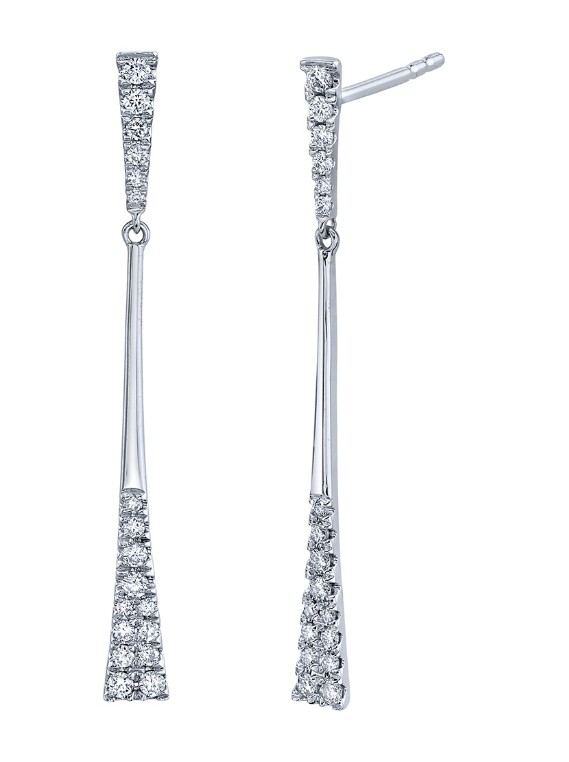 Lady’s White 18 Karat Drop Dangle Earrings 36 = 0.22tw Round G/H SI1 Diamonds Gram Wt: 1.66