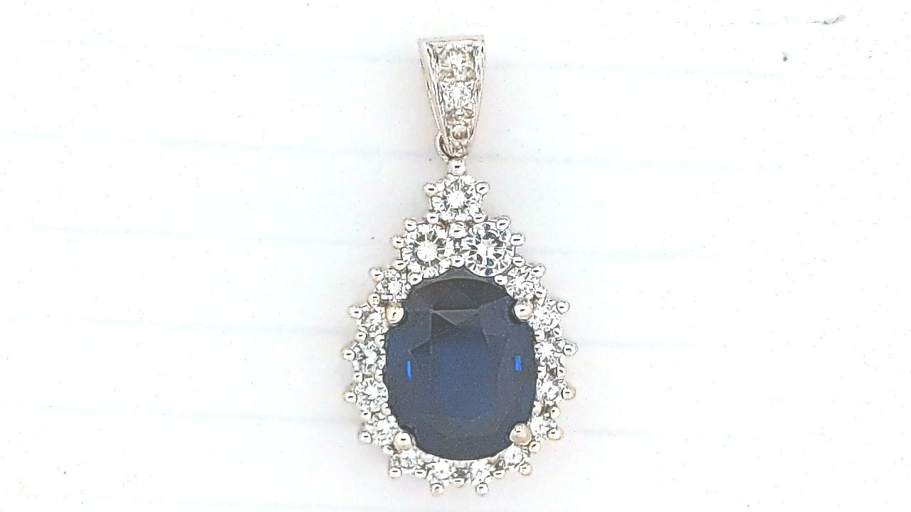 Lady’s White 18 Karat Sapphire Diamond & Sapphire Necklace With One = 6.63Ct Oval Blue Sapphire And 20 = 0.60Tw Round E/F Vs2 Diamonds Diamond: Round Gram: 8.33 Chain: Wheat Metal: 14 Karat Color: White Length: 16 Clasp: lobster Gram: 9.5 One = 6.63Ct Oval Blue Sapphire – Sri Lanka – Natural Corundum – Modified Brilliant Cut