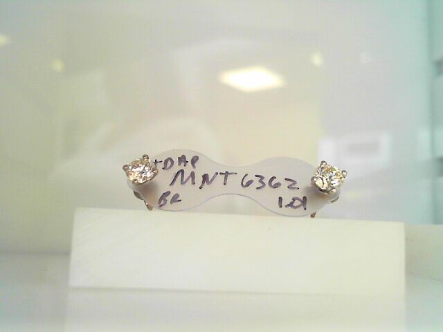 Lady’s White Polished 14 Karat Stud Earrings 2=1.01tw Round G SI3 Diamonds