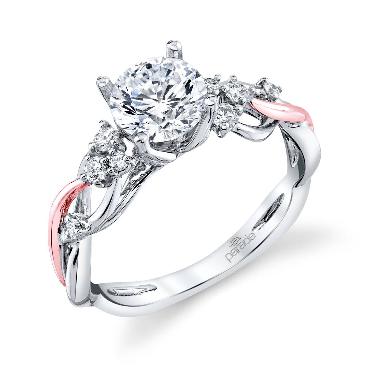 Lady’s White/Rose 14 Karat Lyria Leaves Engagement Ring Size 6.5 8=0.02tw Round F/G VS2 Diamonds Gram Wt: 3.26