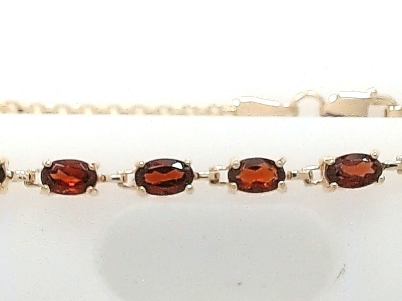 Lady’s Yellow 10 Karat Cable Link Bracelet Length 7 With 6 = Oval Red Garnets