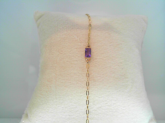 Lady’s Yellow 14 Karat Cable Link Bracelet Length 6.5 With One Emerald Amethyst
