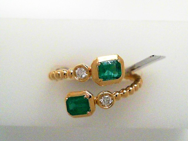 Lady’s Yellow 14 Karat Contemporary By-Pass l set Fashion Ring prong set 2 = 0.64tw Emerald Green Emeralds