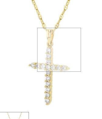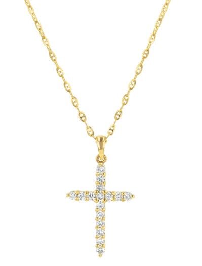Lady’s Yellow 14 Karat Cross With Diamond Accents Pendant Length 18 With 16 = 0.23Tw Round H/I Si1 Diamonds Style: Mariner