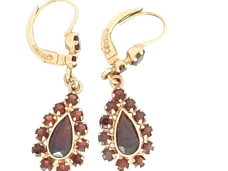 Lady’s Yellow 14 Karat Drop Earrings With 28 = Various Shapes Garnets