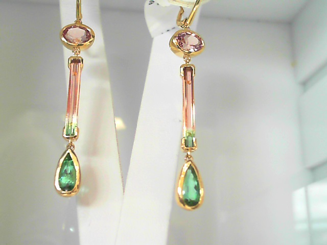 Lady’s Yellow 14 Karat Drop Earrings With Various Shapes Garnets And 6.25Tw Various Shapes Tourmalines