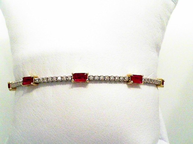 Lady’s Yellow 14 Karat Flex 5 Station Emerald Cut Ruby And Diamond Bracelet 32 = 0.33tw Round G/H SI2 Diamonds