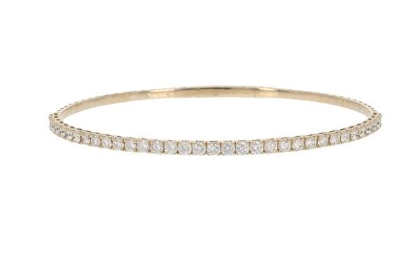 Lady’s Yellow 14 Karat Flex Bangle Bracelet With 34 = 1.96Tw Round G/H Si2 Diamonds