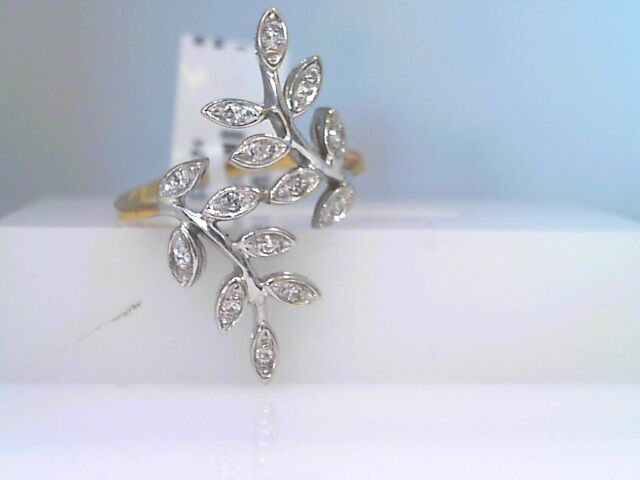 Lady’s Yellow 14 Karat Floral Fashion Ring Size 7 With Round Diamonds