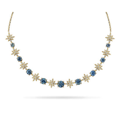 Lady’s Yellow 14 Karat Mont Sapp & Dia Necklace With = 0.61Tw Round E/F Vs2 Diamonds And 9 = 2.75Tw Round Blue Montana Sapphires Chain: Cable Link