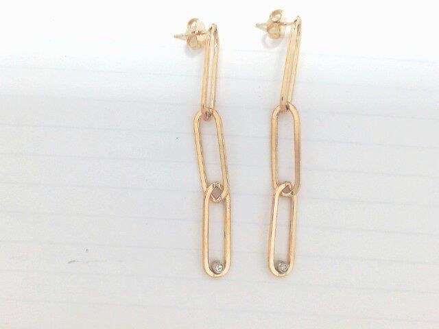 Lady’s Yellow 14 Karat Paperclip Earrings With 2 = Round Diamonds