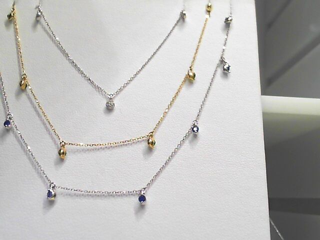 Lady’s Yellow 14 Karat Station Necklace With 7=0.29Tw Round Emeralds Style: Cable Link