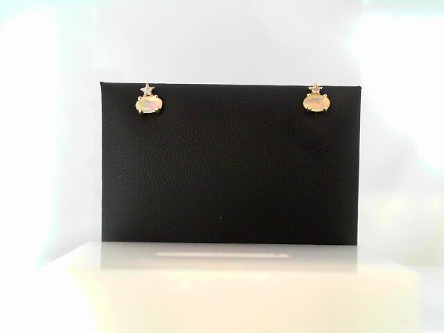 Lady’s Yellow 14 Karat Stud Earrings With 2= Oval Onyxs And 0.02Tw Rose Cut Diamonds