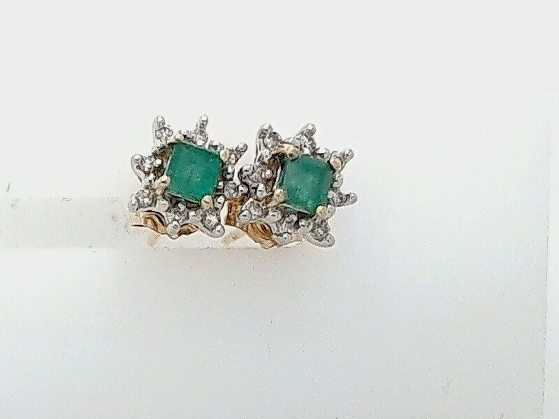 Lady’s Yellow 14 Karat Stud Earrings With 2 = Princess Emeralds