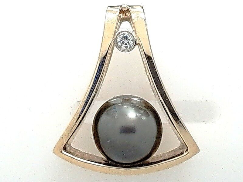 Lady’s Yellow 14 Karat Tahitian Pearl Pendants With One = Round Diamond And One = 10.00Mm Tahitian Pearl 8.35 grams