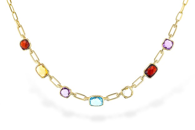 Lady’s Yellow 14 Karat Various Multi Gemstone Necklace Length 17 Chain: paperclip
