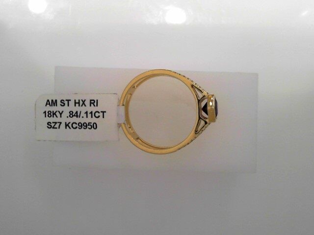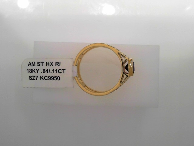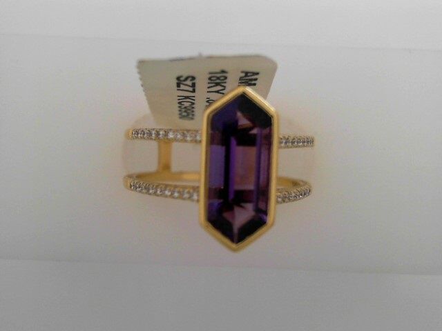 Lady’s Yellow 18 Karat Bezel Stone Double Banded With Diamond Accents Fashion Ring Size 7 With One = 0.84Ct Hexaganoal Shapes Purple Strong Amethyst And 36 = 0.11Tw Round F/G I1 Diamonds