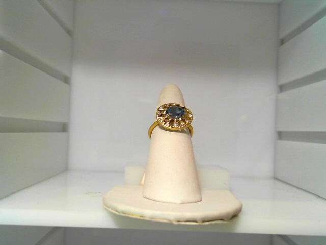 Lady’s Yellow 18 Karat Contemporary Fashion Ring Size 7 With 1.25Tw Oval Aquamarine And 0.30Tw Round Diamonds