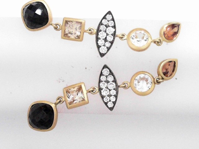 Lady’s Yellow 18 Karat Matte’ Black Spindal Drop Dangle With Zircon And Diamond Accents Earrings 2 = 3.76tw Cushion Black Strong Spinels