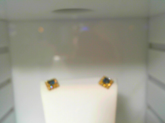 Lady’s Yellow 18 Karat Stud Earrings With 0.65Tw Princess Cut Aquamarines And 0.12Tw Round Diamonds
