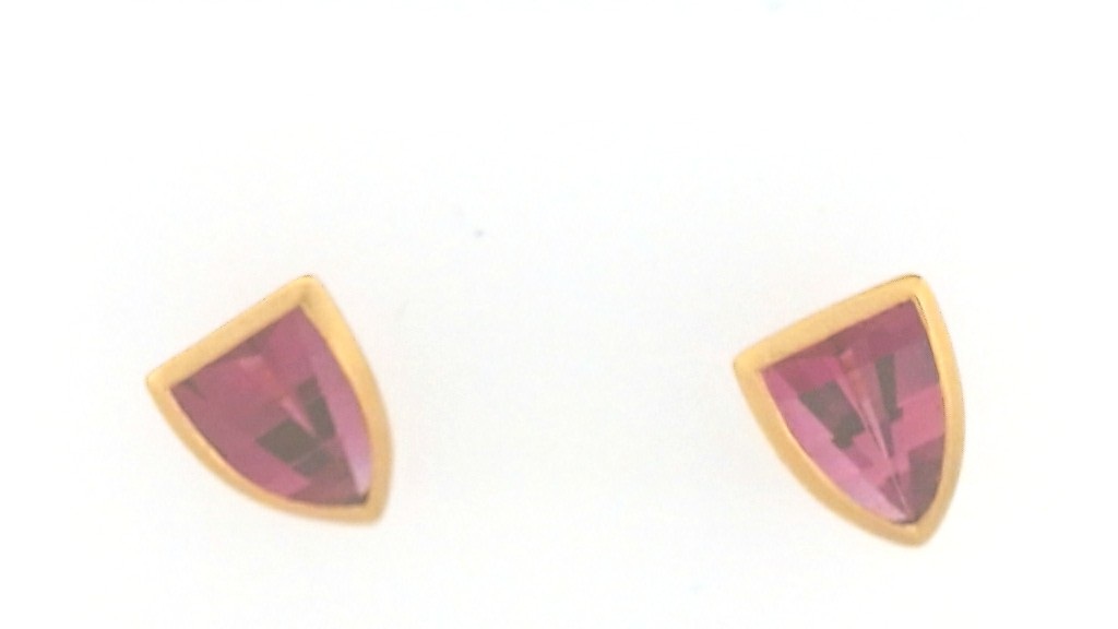 Lady’s Yellow 18 Karat Stud Earrings With 2=3.03Tw Fantasy Cut Rhodolite Garnets