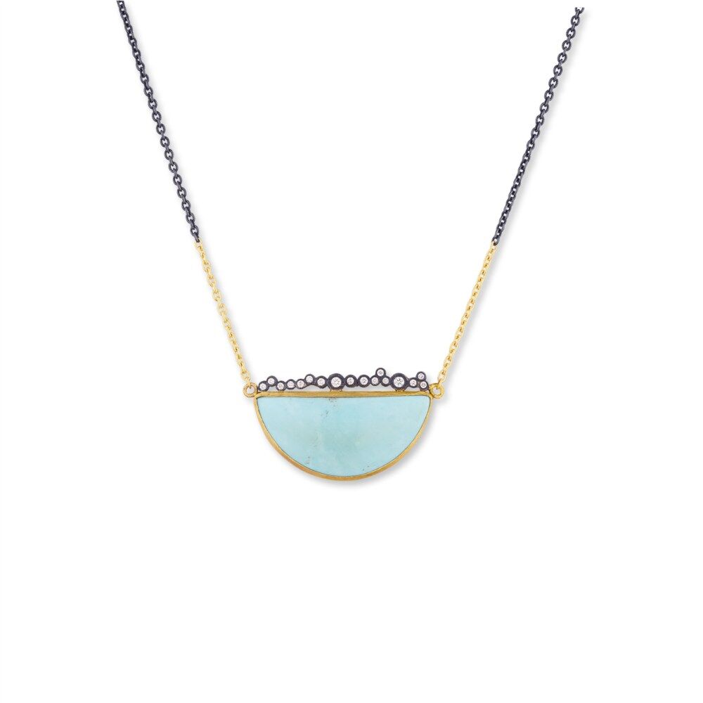 Lady’s Yellow 24K Dylan Necklace With One = 22.34Ct Various Shapes Turquoise And 16 = 0.25Tw Round Diamonds Chain: Cable Link