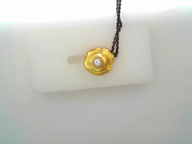 Lady’s Yellow/Oxi 18Kt/Oxi Silver Po/Mat/Oxi Sm Unframmed Flatted Bullet Pendant With White Dia Necklace one 0.10ct Round G VS2 Diamond Style: Cable Link Metal: Sterling Silver Color: Back Finish: OXI Length: 18