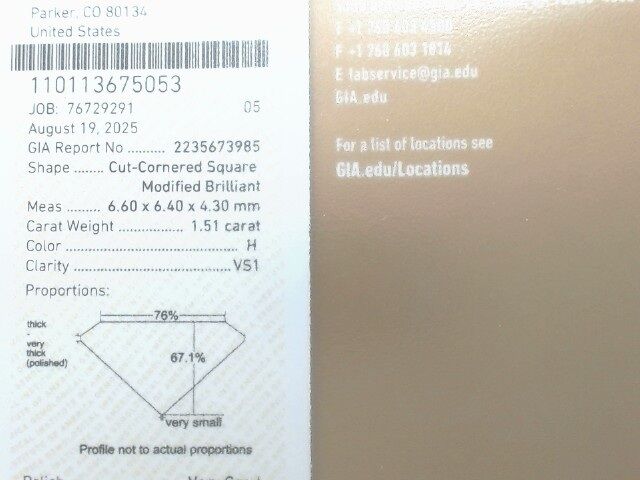 Loose Stones With One = 1.51Ct Cushion H Vs1 Diamond