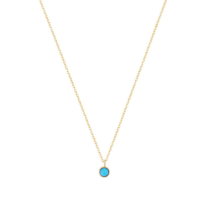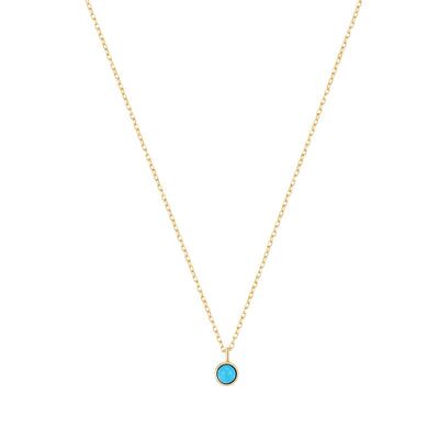 Maria Yellow 14 Karat Fine Link Necklace Length 16- 18 inches With One Round Turquoise