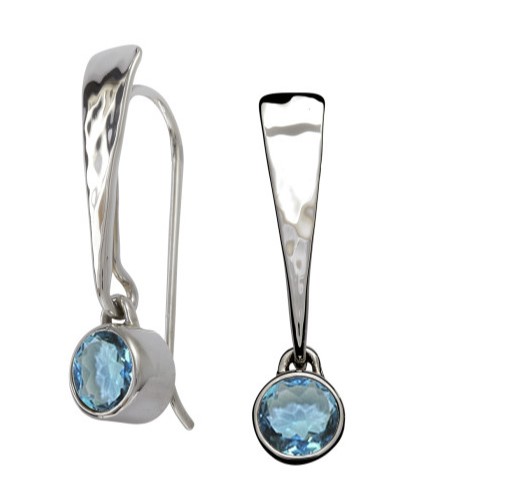 Nautilus Sterling Silver Hammered Drop Earrings With 2= Round Blue Topazs