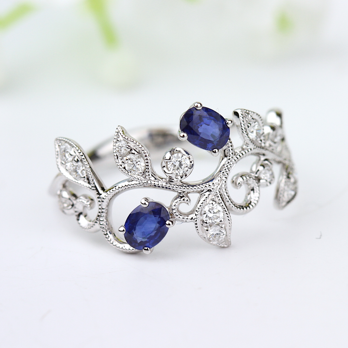 Sapphire & Diamond Floral Band Available in Platinum, as well as 18K White, Yellow or Rose Gold.