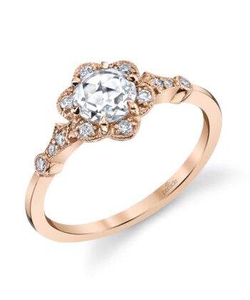 Parade Design Lumiere Vintage White Polished 18 Karat Engagement Ring Size 6.5 With One 0.29Ct Rose Cut F/G Vs2 Diamond And 12=0.09Tw Round F/G Vs2 Diamonds Gram Wt: 2.44 gr
