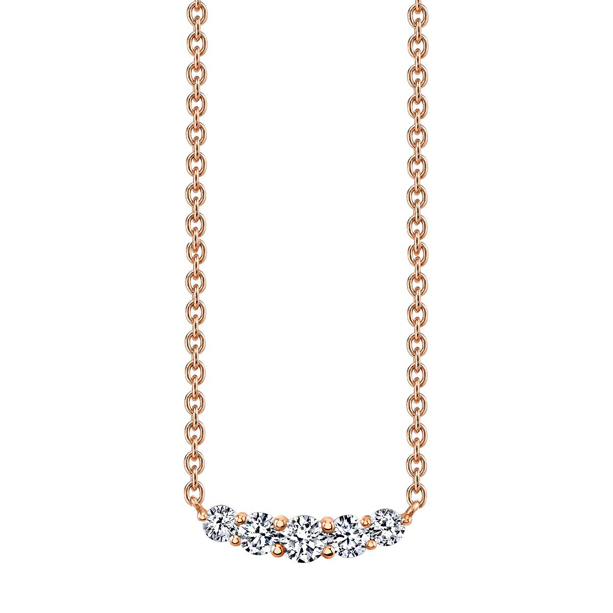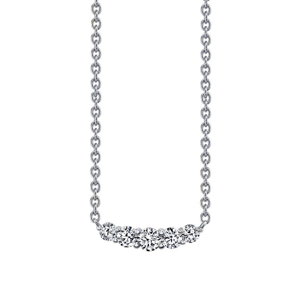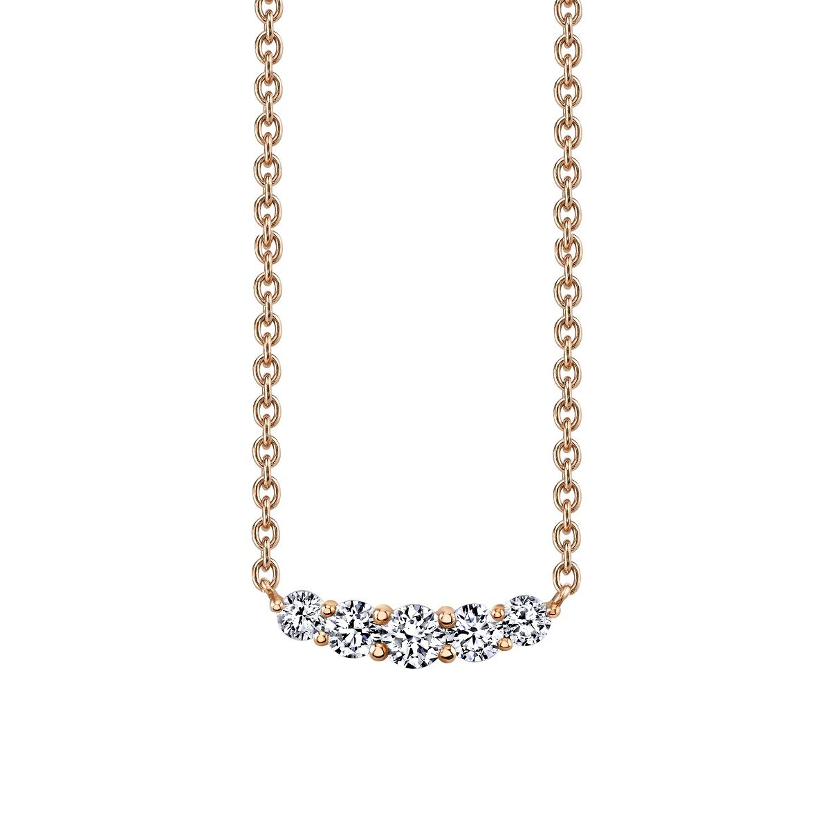 Elegant 5-Stone Diamond Curved Necklace. Perfect for Stacking. Available in Platinum, as well as 18K White, Yellow or Rose Gold.