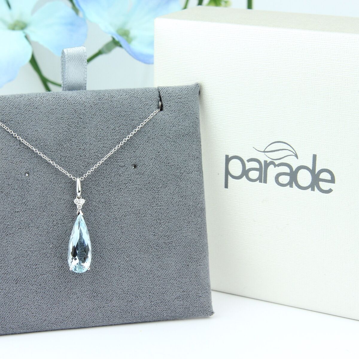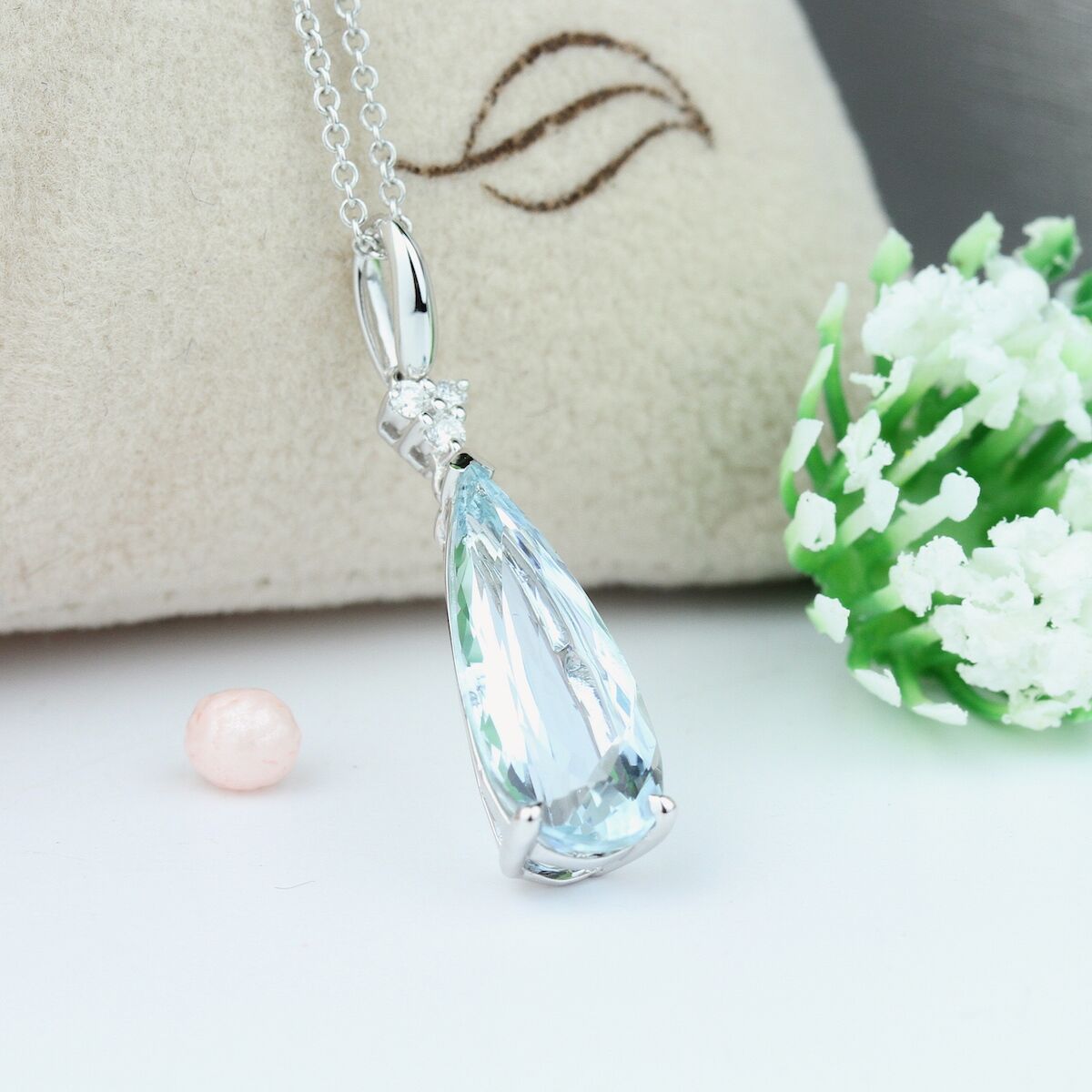 A gemstone’s allure is often elevated by its shape, such as this elongated aquamarine on a classic drop pendant. Available in Platinum, as well as 18K White, Yellow or Rose Gold.