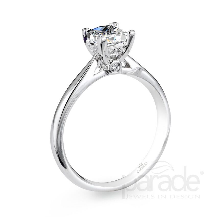 Parade’s classic solitaire features just a hint of sparkle to enhance the brilliance of your diamond. Available in Platinum, as well as 18K White, Yellow or Rose Gold.