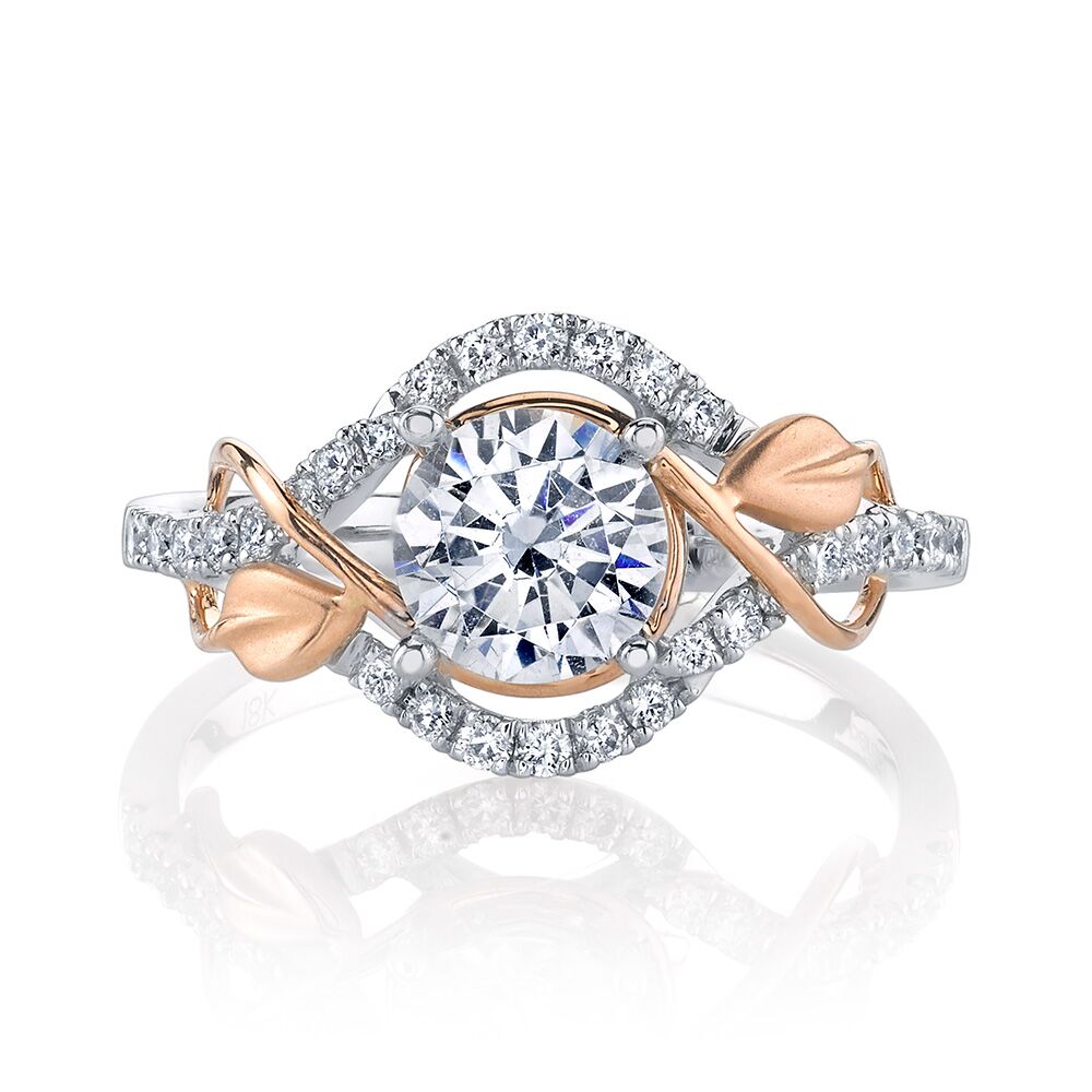 Flourishes of 18K rose gold gracefully adorn a brilliant center diamond in this updated look from the Lyria Collection. Available in Platinum, as well as 18K White, Yellow or Rose Gold.