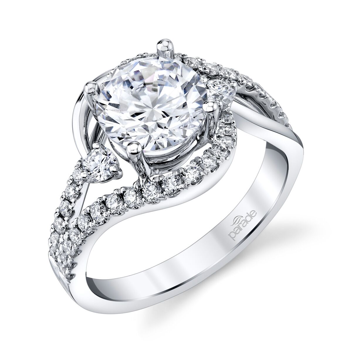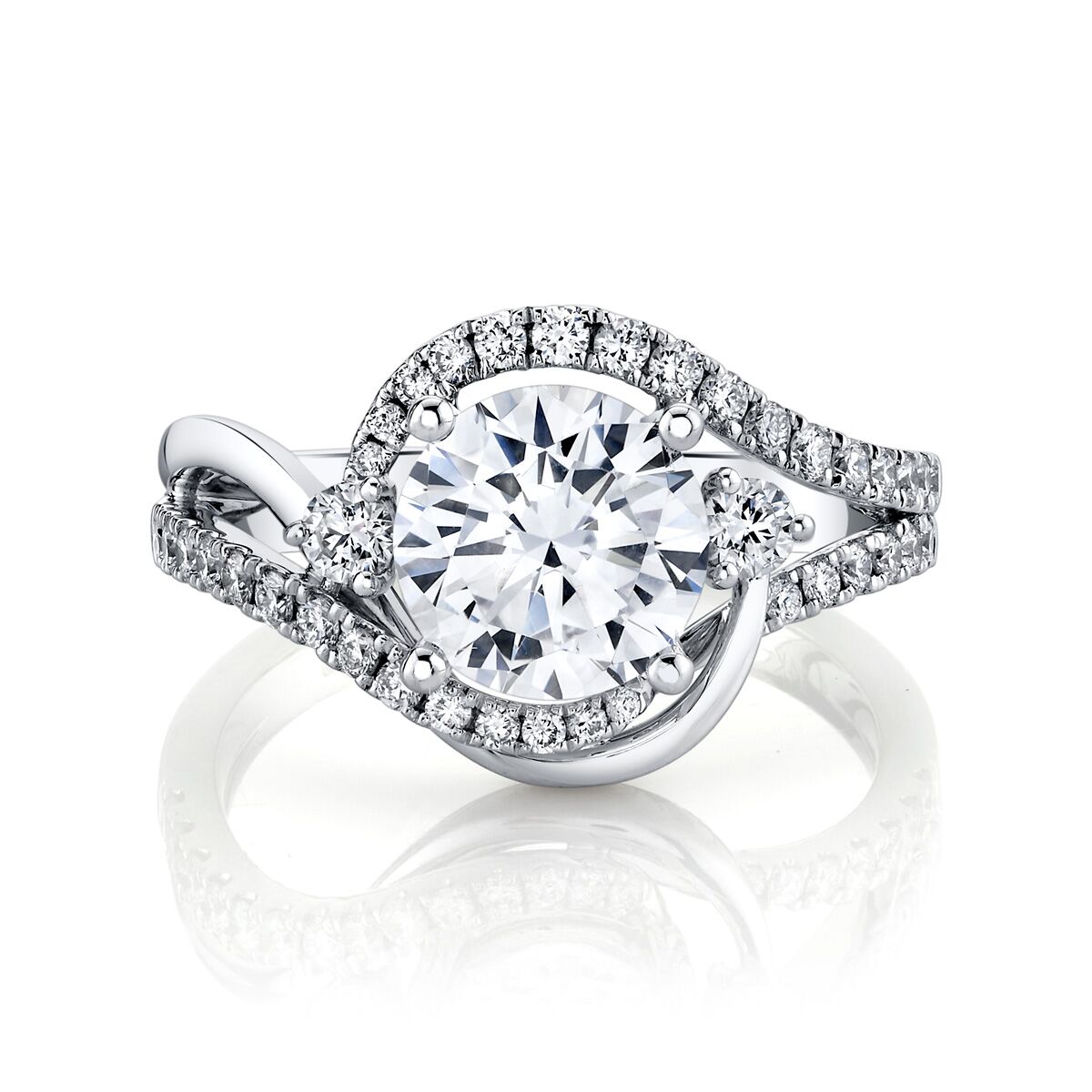 Sweeping curves of diamonds and sleek high polished 18k gold spotlight a brilliant center stone. Available in Platinum, as well as 18K White, Yellow or Rose Gold.