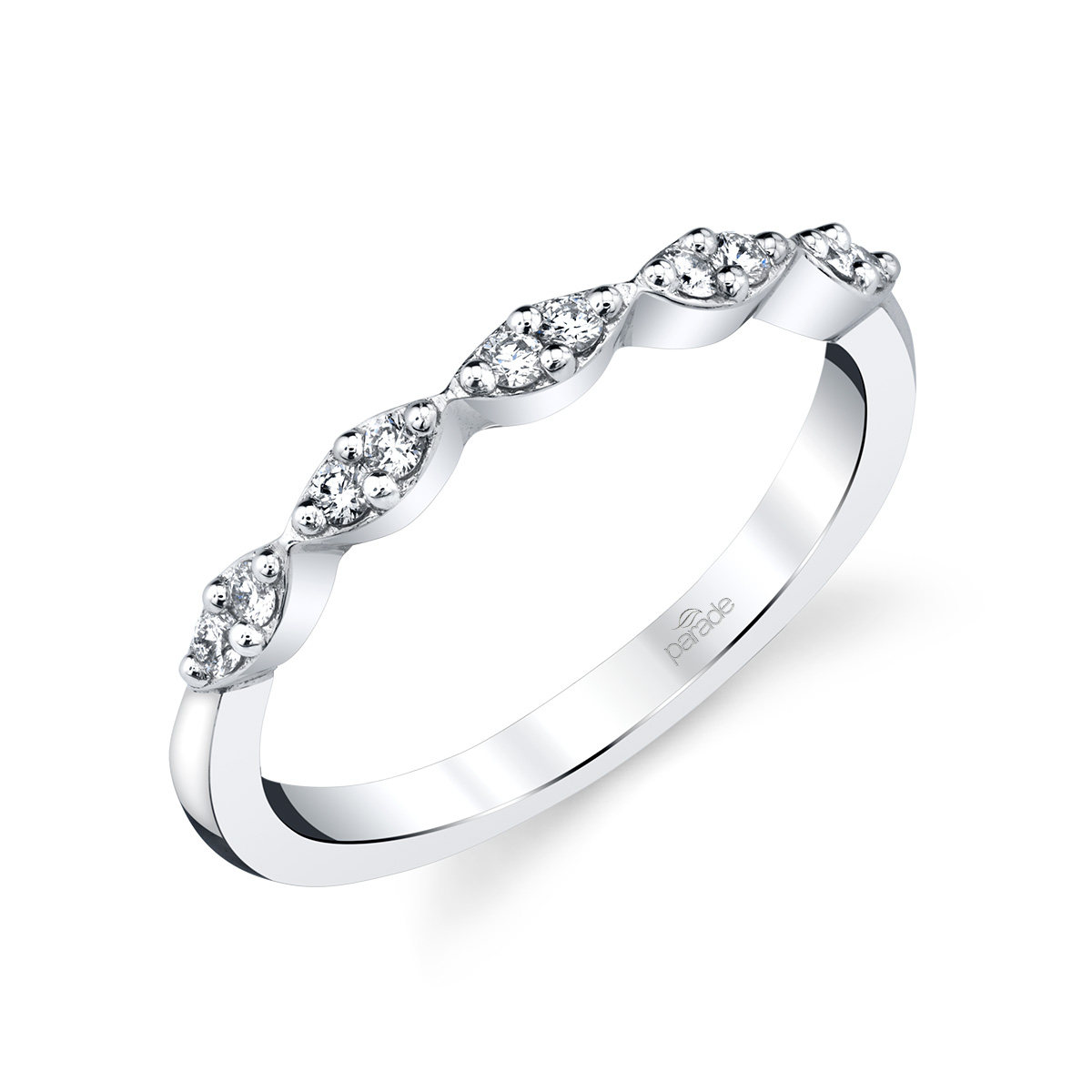 From the Hemera Collection, a geometric band of brilliant white diamonds are set in gleaming 18k gold. Available in Platinum, as well as 18K White, Yellow or Rose Gold.