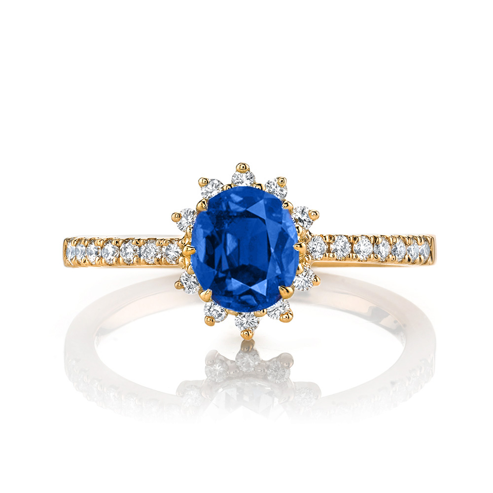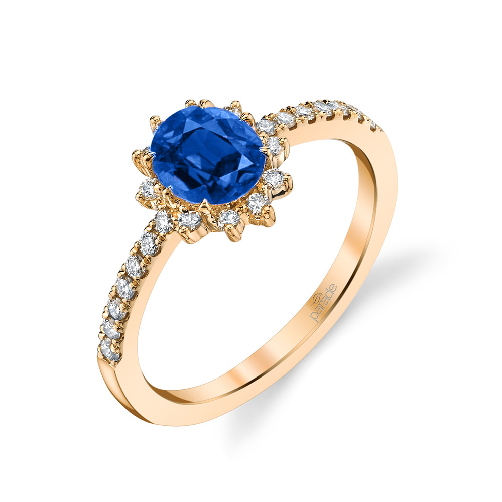 Elegance meets passion in this classic Sapphire & Diamond Halo Ring. Available in Platinum, as well as 18K White, Yellow or Rose Gold.